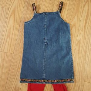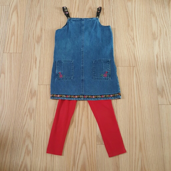 Girls Size 6 outfit with jean dress and red tights. Good condition and good for fall. Clean and ready to go from a non-smoking home.