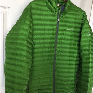 This coat is very warm but lightweight. Basically the best of both worlds! It was only worn 3 or 4 times and is in perfect, like-new condition. This is definitely a great buy!