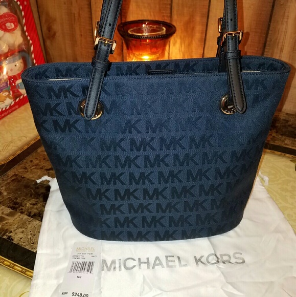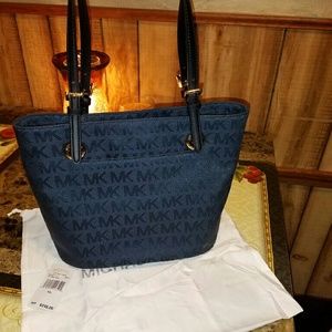 BNWT NAVY BLUE MEDIUM TOTE DUST BAG INCLUDED SMOKE N PET FREE HOME