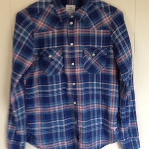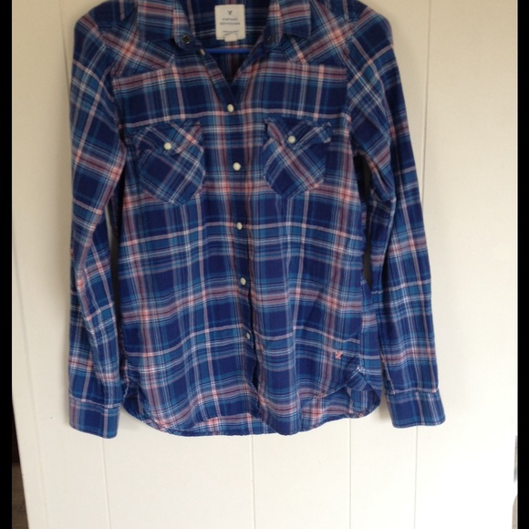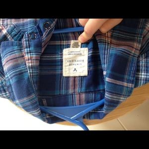 American Eagle, vintage boyfriend button up shirt, blue pink and white in color. Size XS/TP. Great condition no stains