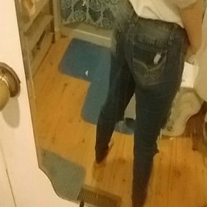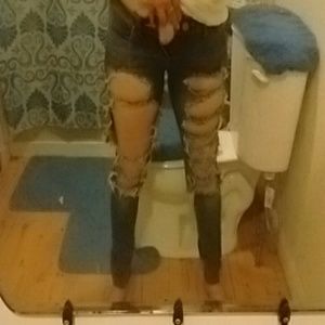 YMI 'boyfriend style' ripped skinny jeans. Super comfy. The zipper does need fixed as shown in picture 4.