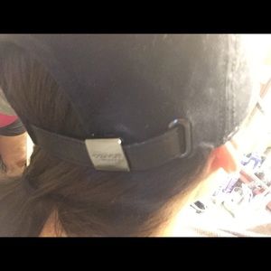 Black athletic coach hat. Adjustable strap goes for woman or man