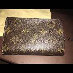 Louis Vuitton French kiss lock wallet in good condition. It's flaws are minor rubbing on the outer leather, wear on the edges shown in pictures and few loose stitches. 100% authentic... Comes with dust bag