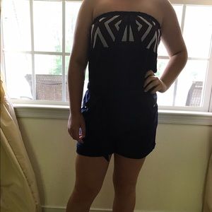 Lot of three sassy rompers strapless cap sleeves and spaghetti strap 1st one red white and blue 2nd black n white 3rd mint green all three in perfect condition hand washed and line dried very gently worn all size medium