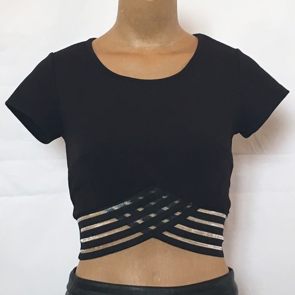 Crop Top, Translucent Detail at Bottom Front, Color Black, Size Large, Can also fit Medium Size