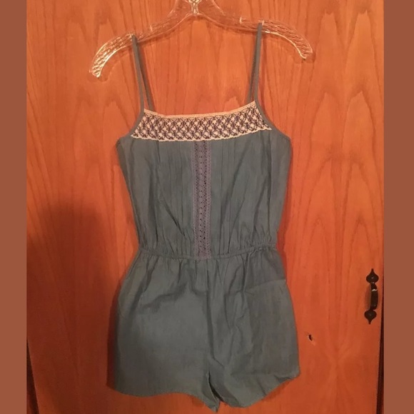 NWOT Flying Tomato Spaghetti Adjustable Strap Light Denim Jumpsuit Size S