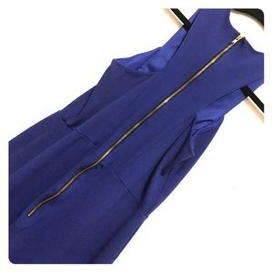 Royal blue midi dress. Box style neckline. Has tiny slit in front bottom. Zipper at back. Super beautiful.