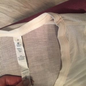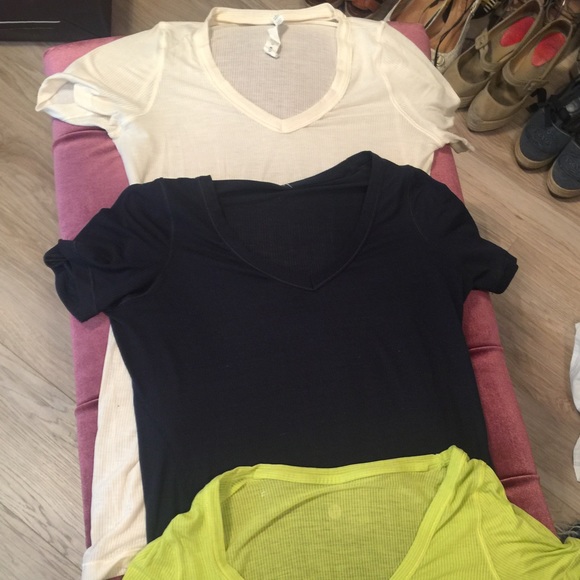 3 lulemon shirts in a very good condition. Size 4 and also fits into size 2. Colors are beige, dark navy blue and green.