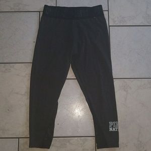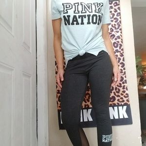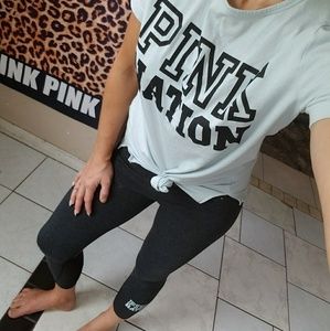 Guc vs pink nation set. Top is blue with a lace up back and logo on front size x small. Bottoms are cropped with mesh at the bottoms and pink written around the waistband with pink nation logo on bottom leg. Size med. you can also buy separate pants are 36$ top is$36