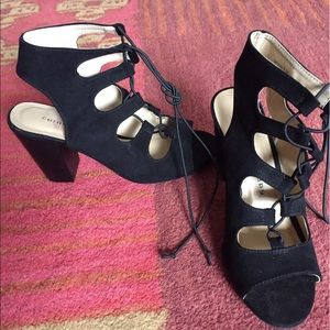 3 1/2 inch heels lace up open toe shoes. Cute for going out or any occasion.