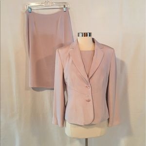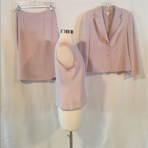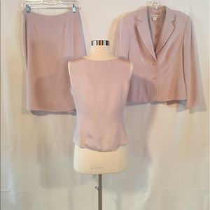 Casual Corner 100% Silk Fully Lined 3 Piece Skirt Suit Size 6. On the inner sleeveless blouse near the arm hole is a small stain. See pics.