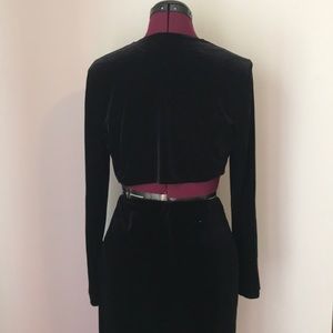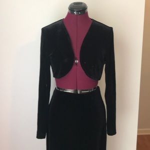 Vintage stretch black velvet maxi skirt with elastic waste. My Michelle brand (size small), black velvet long sleeve cropped open top. Steppin' Out brand(size medium) barley worn, no stains, mint condition!
