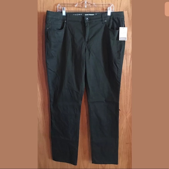 NWT Women's Sonoma Slim Straight Nocturnal Green 5-Pocket Pants Size 18L - New