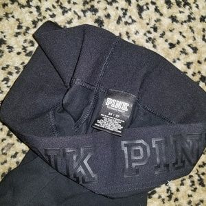 Like new with 4 stretch waistband and logo written around waistband. Also silver bling logo on side of leg. And detailed with gray and white stripes. Super cute worn once size xs.