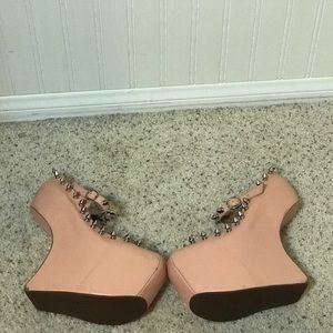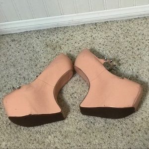 preloved ballerina heelless spiked platforms jeffery campell. pictured above is condition. so comfy and so fun. usually a size 8 but these fit well.