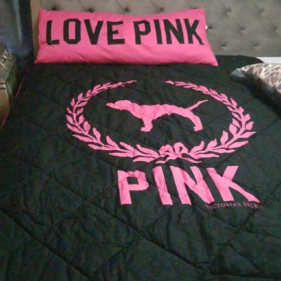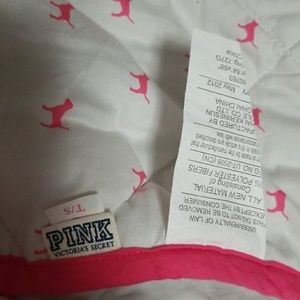 Size Twin PINK comforter and matching body pillow. In brand new condition. No fading or discoloration at all. Zipper works on body pillow. Was also used in spare room never slept on. I paid alot of money for this. Selling as a set, will not separate.