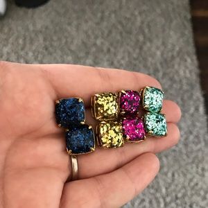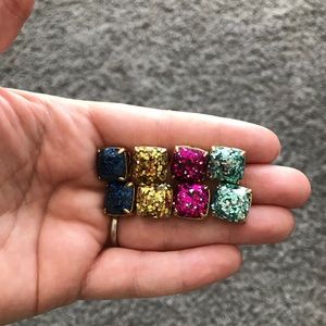 Never wore any of these! You can buy one pair, all or any combo! I will create a separate listing. I didn’t keep any dust bags but they are all legit Kate spade earrings! Please don’t low ball these earrings usually go for 38 bucks. ❤️Mahalo! Also just added another pair of Kate spade earrings to listing. They are pink/rainbow...a few scratches noted in the pic. Willing to give these at a lower price with glitter stud purchase