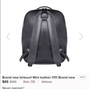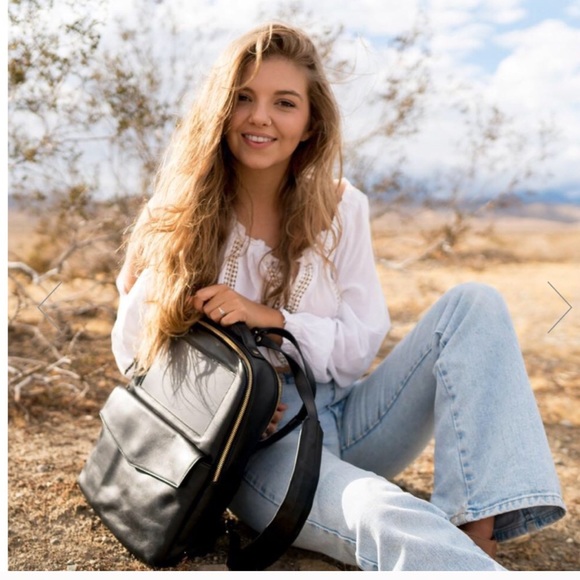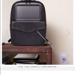 The mini leather is designed for em school or hands free weekends! Dimensions: 13”(h) x 13”(w) x 3”(d) ! Volume 10 liters! Fits 13” MacBook Pro ! Charges your cell phone! Brand new , got two for Christmas selling one ! I love it and it’s so practical! Premium fabric and stitching! Creates power from the sun 2 minutes = 1% charge!