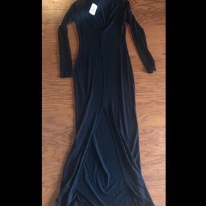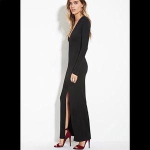New with tag Front Slit maxi black dress by Forever 21. With long sleeves and a sexy big slit front-slit it provides coverage with just the right amount of sexy.