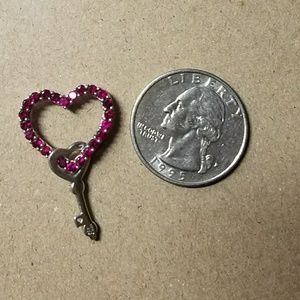 So very pretty sterling silver ruby heart cz accented key pendant. No chain included. No missing stones. Photos don't do it justice. From a jeweler but I can't remember which one.