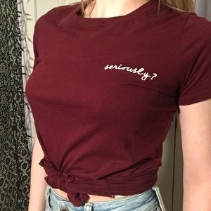 - “Seriously?” Maroon Short Sleeved Graphic Tee