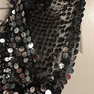 Sequins are plastic and may be missing in a spot or two. Unnoticeable.