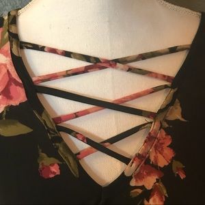 Flower shoulders off sleeve shirt with tie it up in the front of the chest area