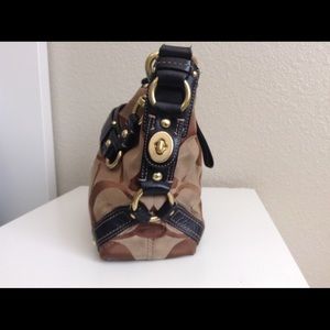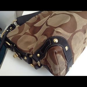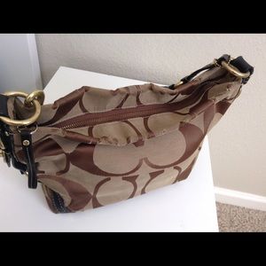 This bag has inside two open pockets and one zipper pocket, clean inside measures 12.5" x 8.5" x 4" strap drop 9" , this bag has some rub-out close to the closure zipper and in one corner. Please look the photos carefully. Thanks for watching.