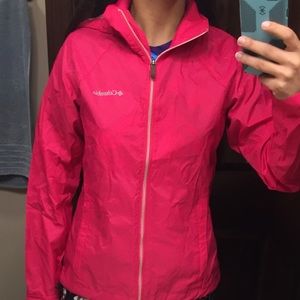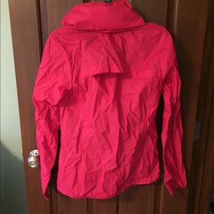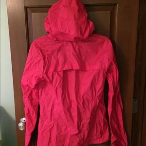 Brand new rain jacket! Velcro feature to conceal hood when you don’t need it for a sleek look! Light weight, perfect for spring :) also has velcro adjustable sleeves!