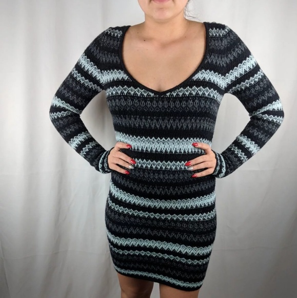Free People Womens Sweater strechy Mini Dress Size Small-P Black Comb