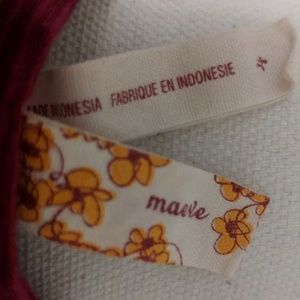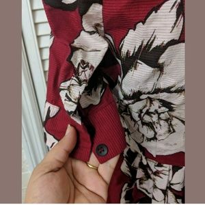 Anthropologie Maeve Womens Sz 4 Half Button up Side zip Up Burgundy floral dress.