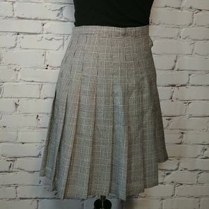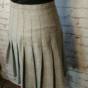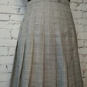 Cool vintage schoolgirl black and white houndstooth plaid. Pleated, flared with a high waisted cut. Midi length, side zip.