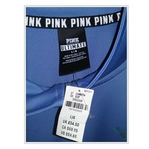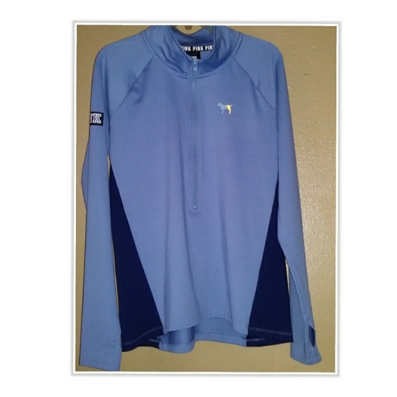 Turtle neck, half zip up, holo dog logo on left side, says pink on the right sleeve only, thump holes. I'd say its nice for exercising!!πͺ from the material. Has been sitting in my closet for the longest time π need it gone