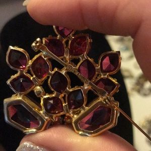Beautiful strawberry colored stones with tri colored stones in this lovely brooch