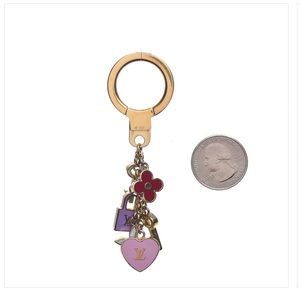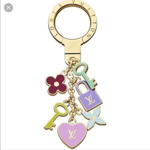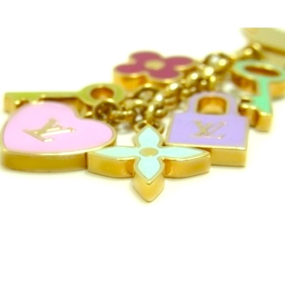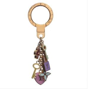 stylish key ring charm is crafted of brass and features Louis Vuitton symbols enameled in pastel colors. This stylish accessory is ideal for everyday use from Louis Vuitton!