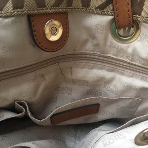 Authentic Michael Kors Handbag. Used but in good condition with some ink marks and little stains on interior of bag. (See pictures)