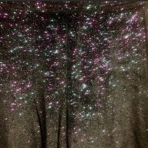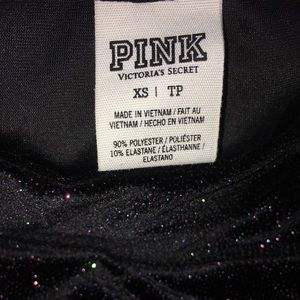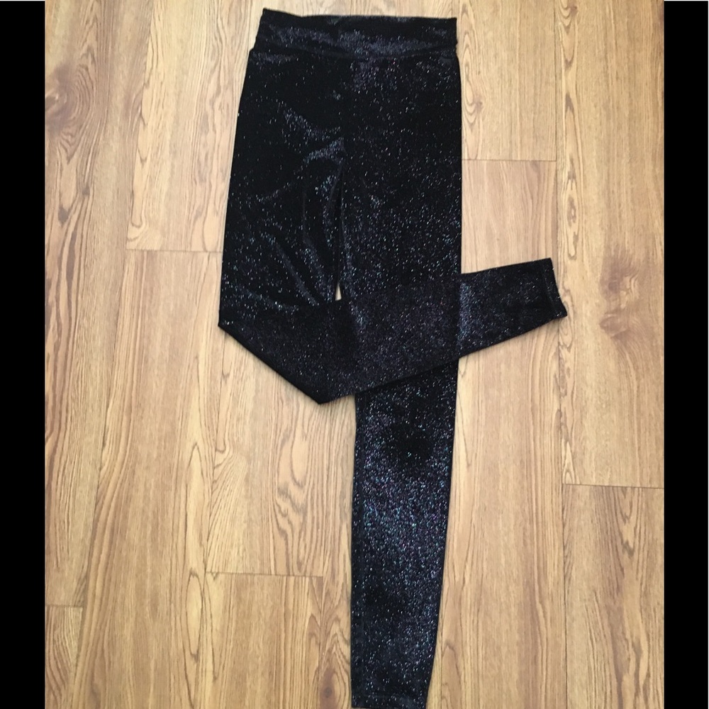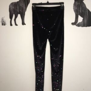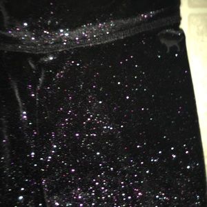 Victoria's Secret PINK velour/velvet shimmer glitter leggings. Black with purple and green glitter that makes these have a galaxy like look.