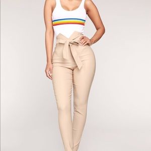 Knot your girl pants, Khaki. Super cute pants. Stretch for cute fit but not much stretch in a the waist. I’ve gained a few inches in my waist. So too tight for me.