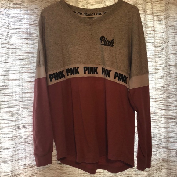 Victoria secret PINK long sleeve sweater. Size medium. Slightly oversized, could fit medium or large. Color on the bottom is muave. V neck neckline