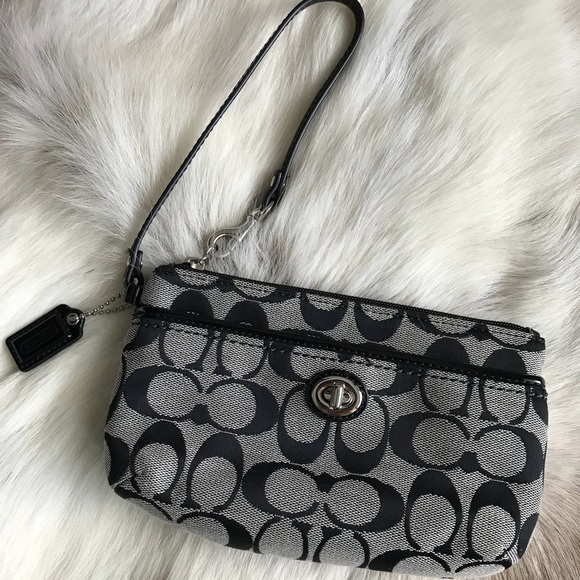 coach wristlet with front pocket. Can fit cards, cash along with other items and big enough to fit your iPhone or Android 🖤