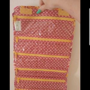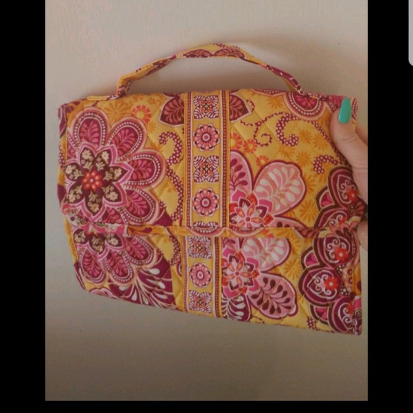 Vera bradley make or jewelry bag. Ma.y compartments. Great condition except for tiny spot on one pocket as shown in pics. Used may be twice