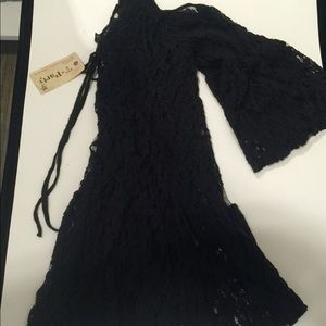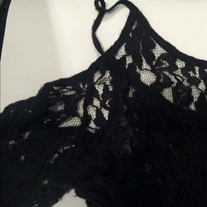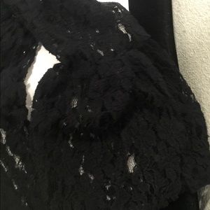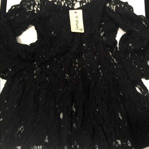 Beautiful loose knit lace black embroidered blouse . It's such a comfy top with the perfect stretch so it is very figure fitting a slight flare at waist to edge . New with tags 💜originally paid $48 asking $18 thank you