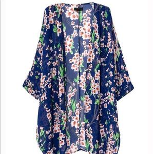Vibrant blue flowy kimono. Fabric is sheer and loose fitting. Beautiful addition to any wardrobe. Size M, brand new, never worn.