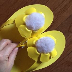 New in box. Never worn new. Size 6 but fits True to size 7. EU size 38. 24.5 cm. Authentic from Nordstrom. Flat flip flops. Shoebox included. Bright yellow. Hologram sticker attached for its authenticity. No trades.
