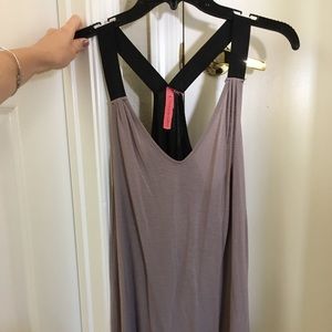 Light purple Racerback, loose fitting fabulous top! Perfect for a night out! Good condition. Strappy Black back, that drapes fabric down the back. Low cut but innocent looking! Might be considered a grey purple. Eight Sixty is a brand Nordstrom carries.