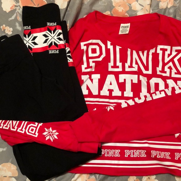 Size large . Perfect for the holidays . Comfortable and cute . Shirt is crop long sleeve and leggings are stretchable . Excellent condition.