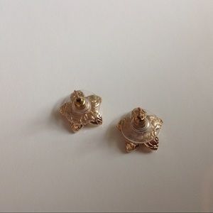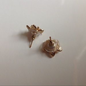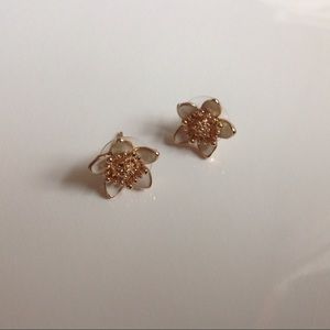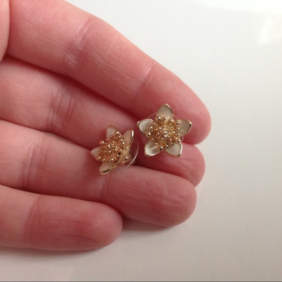 Lovely set of flower earrings in excellent condition. Gold with cream enamel, and light pattern on the backs. Approximately 1/2" tall.