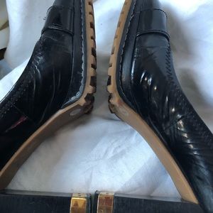 Condition is Pre-owned. The right shoe is missing a part of the metal buckle...can be worn as is or remove the extra metal piece on the right shoe. The leather shows wear from normal use.