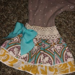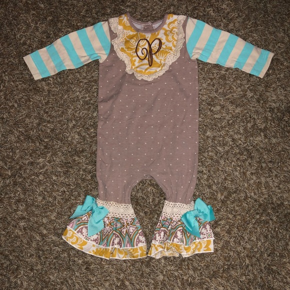 Long sleeve romper worn for picture only like new condition monogram p on the front.
