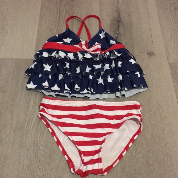 Super cute stats & stripes swimsuit. Great for the 4th of July weekend. EUC